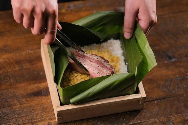 Enveloppé dans des feuilles de dong vertes, le bánh chưng incarne également l’harmonie entre l’homme et la nature, un principe fondamental de la pensée orientale.