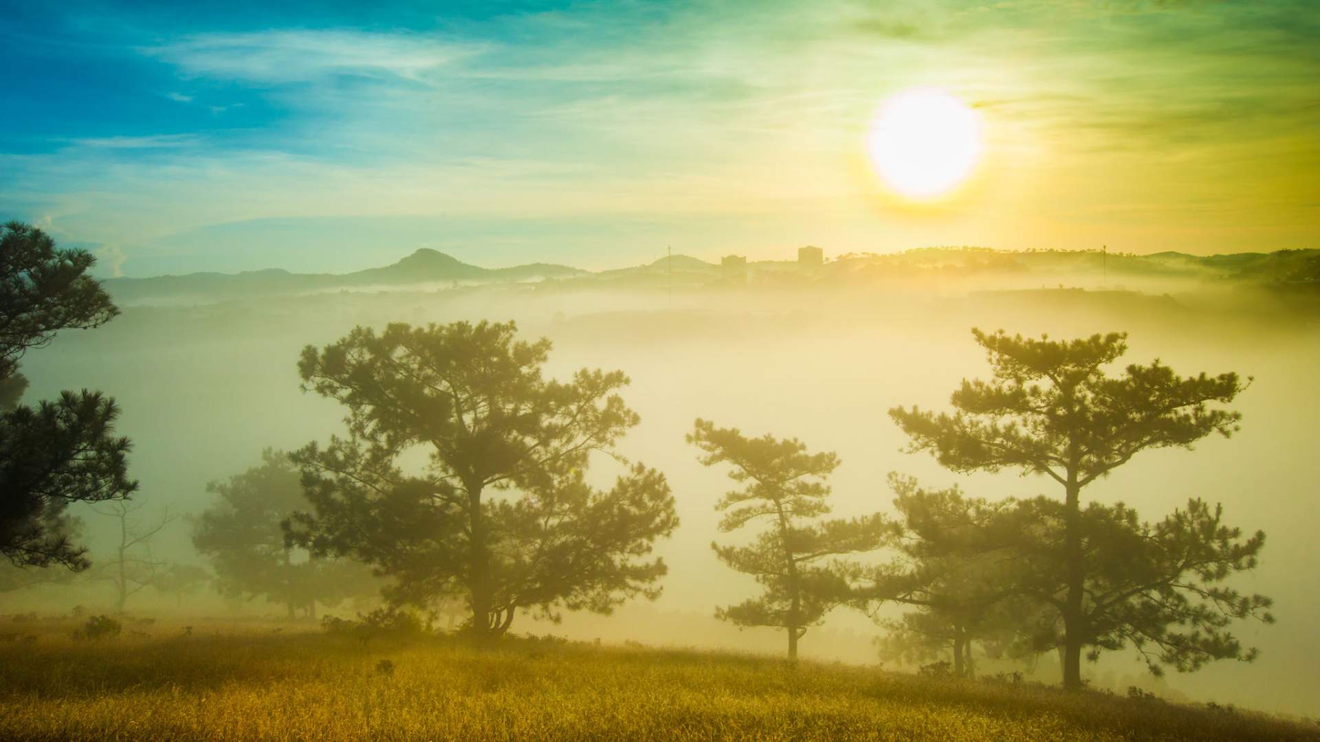 Đà Lạt — lever de soleil sur mer de nuages et forêts de pins