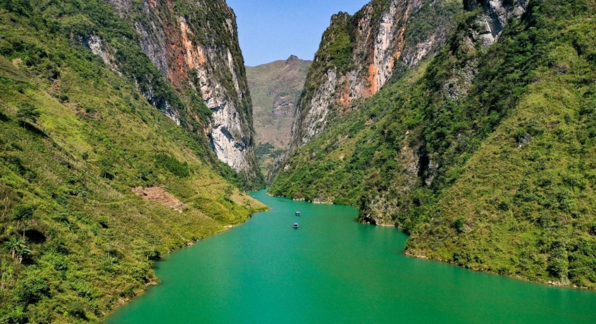 Symbole du district de Mèo Vạc, la rivière Nho Quế coule paisiblement toute l’année entre les falaises escarpées du plateau rocheux de Hà Giang. Elle forme une frontière naturelle entre le col de Mã Pí Lèng et la route Sam Pun.