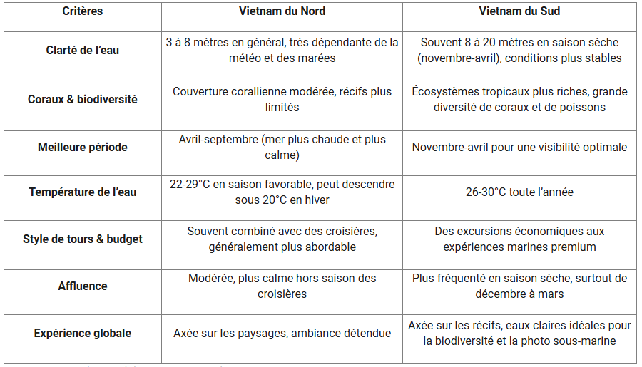Le snorkeling au nord et au sud du Vietnam révèle deux univers marins bien distincts.