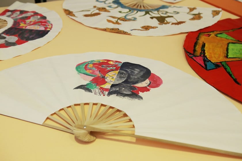 La structure est recouverte de papier ou de tissu. Cette étape exige des gestes précis afin d’éviter plis et imperfections. Certains éventails sont peints de motifs traditionnels, de paysages ou de calligraphies. D’autres présentent des broderies délicates sur des tissus fins.